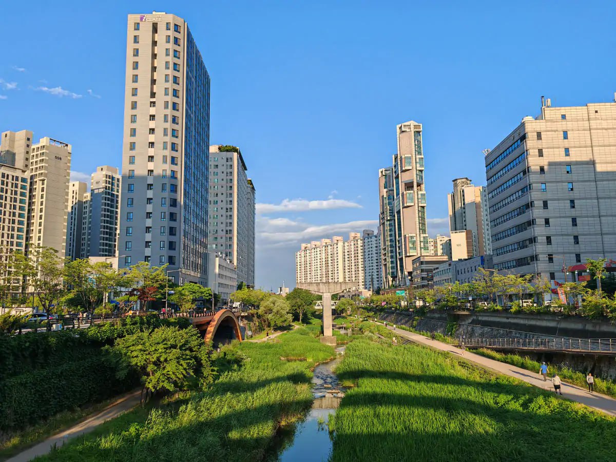 Дунё тажрибаси шуни кўрсатадики, сув ва яшил ҳудудлар уйғунлиги шаҳар иқлимига сезиларли таъсир кўрсатади. Масалан, Сеул шаҳрининг марказида аввал бетон йўл билан ёпилиб қолган Чёнгичхон дарёси қайта тиклаб, унинг атрофида 2005 йилда улкан яшил сайлгоҳ барпо этилди. Натижада шаҳарнинг бу ҳудудидаги ҳарорат атрофидаги кўчаларга нисбатан ўртача 3–6°C га пастлагани қайд этилди. Янги оқим ва яшиллик туфайли ҳаво айланиши яхшиланиб, майда зарарли чанг заррачалари миқдори 35% га қисқарди.